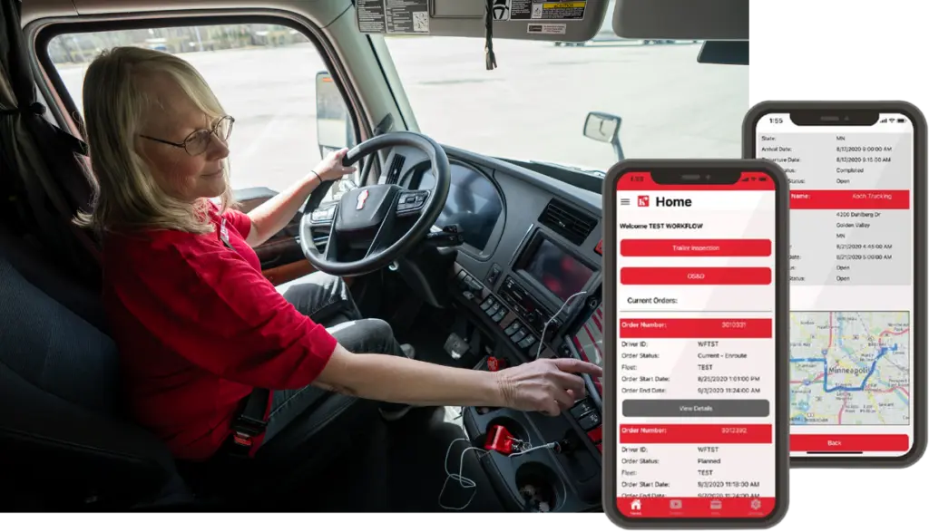 Koch Trucking is committed to offering time saving technology to our customers. Our Koch mobile app utilizes innovative satellite technology offering customers real-time tracking of their freight. The advanced technology in our tractors streamlines communications and data transfer, and recommends optimized lane routing for our drivers.